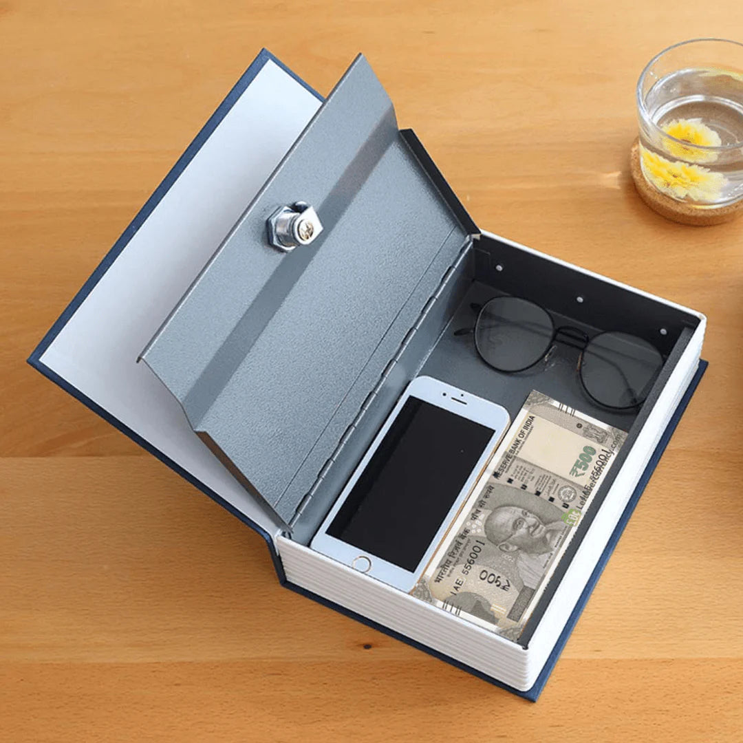خزنة معدنية على شكل كتاب لحفظ الأشياء الثمينة